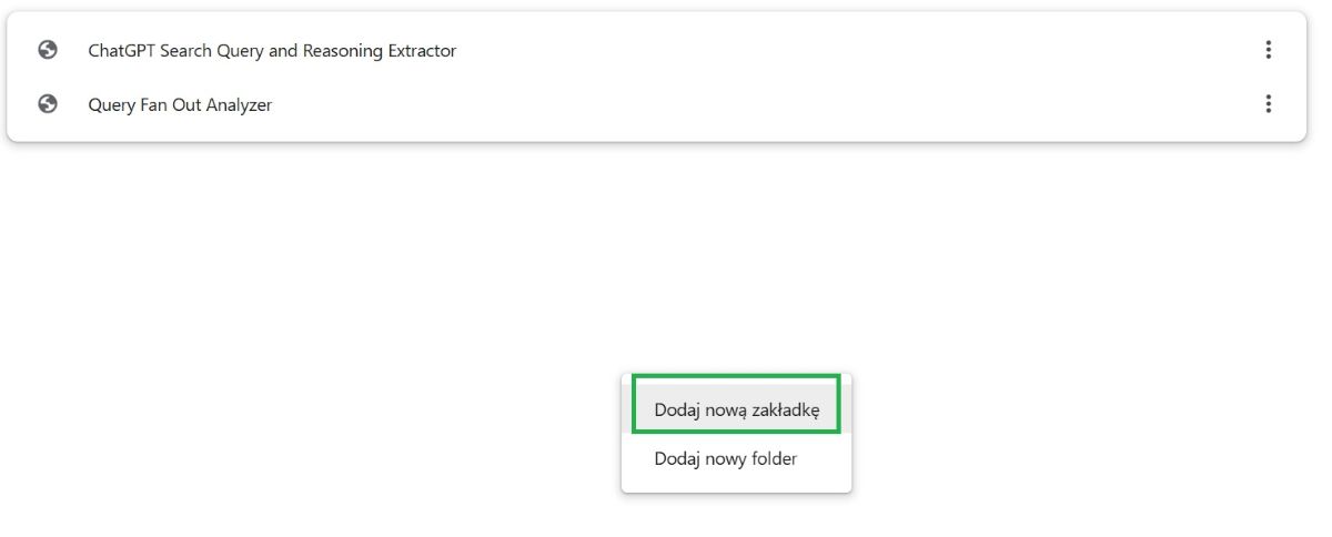 - Klikamy prawym przyciskiem myszy na wolnym polu i wybieramy „Dodaj zakładkę”.