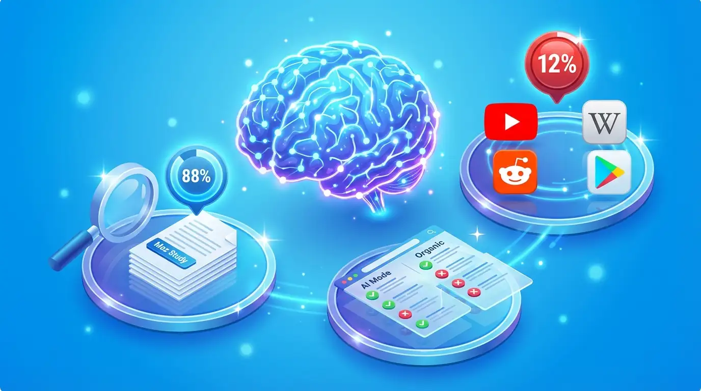 • 88% cytowań AI Mode nie znajduje się w organicznych wynikach SERP dla dokładnie tego samego zapytania