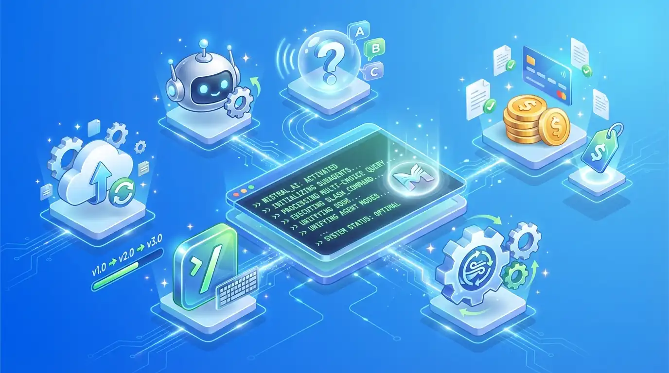 Mistral AI wypuścił Mistral Vibe 2.0 — znaczącą aktualizację swojego agenta do kodowania działającego natywnie w terminalu. Narzędzie oparte na modelach Devstral 2 wprowadza niestandardowe subagenty, interaktywne wyjaśnienia oraz komendy slash. Vibe 2.0 jest dostępny w planach Le Chat Pro i Team z opcją PAYG lub własnym kluczem API.